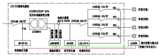 帶絕緣監視及故障定位的IT系統在ICU/CCU室應用示意圖