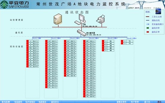 本項目為江蘇常州林華廣場電力監(jiān)控系統(tǒng)。根據(jù)配電系統(tǒng)管理的要求,需要對每棟樓內的樓層配電箱進線進行電力監(jiān)控,以保證用電的安全、可靠和高效。