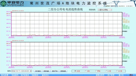 負荷趨勢曲線功能主要負責定時采集進線及重要回路電流和功率負荷參量,自動生成運行負荷趨勢曲線的,方便用戶及時了解設備的運行負荷狀況。點擊畫面相應按鈕或菜單項可以完成相應功能的切換;可以查看實時趨勢曲線或歷史趨勢線;對所選曲線可以進行平移、縮放、量程變換等操作,幫助用戶進線趨勢分析和故障追憶,為分析整個系統(tǒng)的運行狀況提供了直觀而方便的軟件支持。