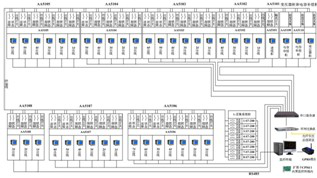 系統通訊結構示意圖,主要顯示系統的組網結構,系統采用分層分布式結構,同時監測間隔層設備的通信狀態。紅色表示通訊正常,綠色表示通訊故障。下圖為辦公實驗樓通訊狀態示意圖。