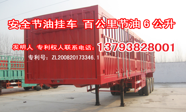 節油新技術油價是一路看漲 對于耗油大戶的半掛車來說可是一筆不小的數目。如何能讓半掛車節油省油呢?現在節油掛車(百公里節油6公升)節油效果全國唯一真實 可先試車后付款成為2013年中國(梁山)第九屆專用汽車博覽會唯一最大亮點是屬于無排風扇節油掛車技術