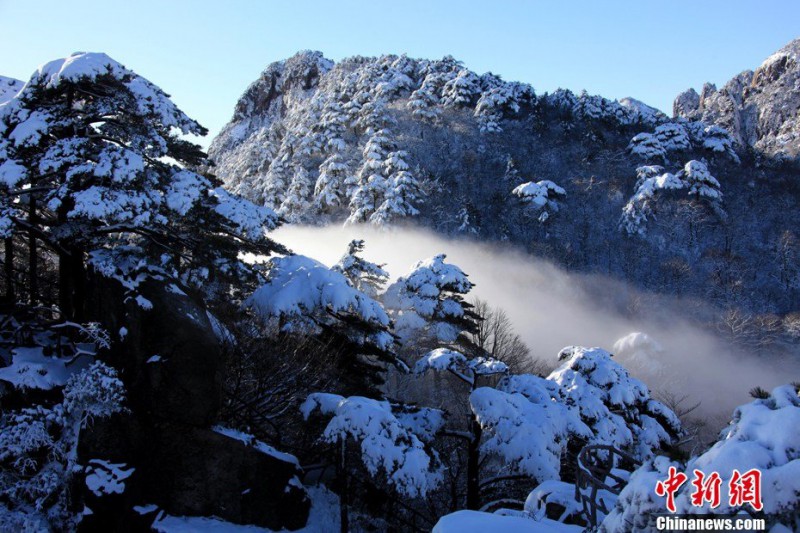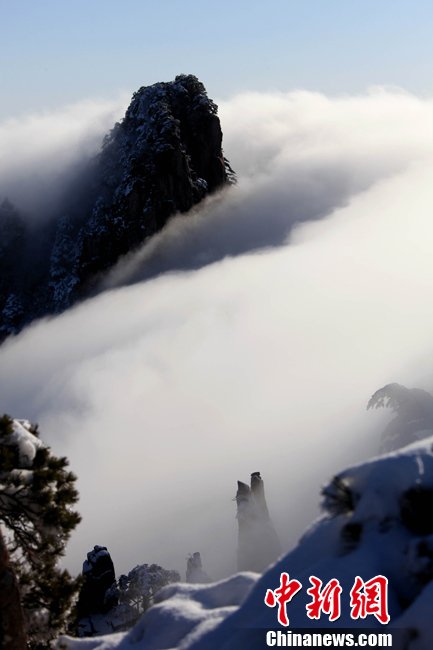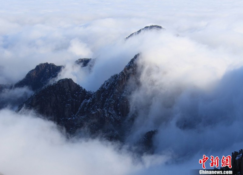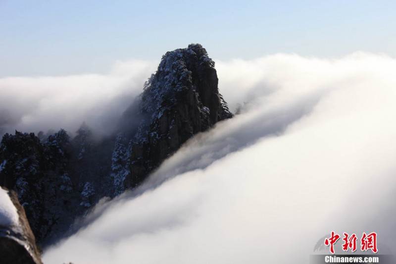 1月17日,安徽黃山風(fēng)景區(qū)始信峰拍攝的瀑布流云奇觀。當日,安徽黃山風(fēng)景區(qū)雪后放晴,罕見的瀑布流云從始信峰的山坳中奔騰而下,洶涌澎湃,座座山峰在云海中若隱若現(xiàn),美輪美奐,似海市蜃樓,蔚為壯觀。