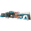 生產(chǎn)線的組成為:SJZ80/156錐形雙螺桿擠出機(jī)、SJZ92/188錐形雙螺桿擠出機(jī)、模頭、六輥壓光機(jī)、輥溫控制系統(tǒng)、上、下放卷裝置、切邊裝置/冷卻托架、在線破碎機(jī)、牽引機(jī)、橫向裁斷裝置、雙工位翻轉(zhuǎn)收卷機(jī)、混料/上料系統(tǒng)、電氣控制系統(tǒng)。