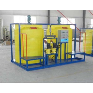 單元組合式加藥裝置,主要有溶液箱、計量泵、過濾器、安全閥、止回閥、脈沖阻尼器、水位表、控制柜等組成一體化安裝在一個底座上。用戶只需將組合式加藥裝置安放在加藥間,將加藥管接好接通電源即可啟動投入運行,這種工廠化的整套裝置,可大大減少設計和現場施工的工作量,對整機的質量、安全和現場投運提供了可靠的保證。