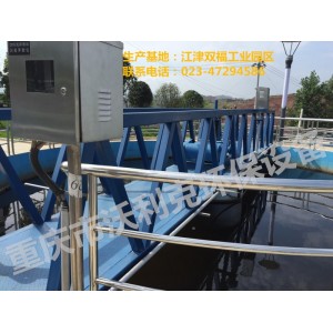 行車式刮泥機適用于給排水工程中平流式沉淀池,將沉降在池底的污泥刮集至集泥槽,并將池面的浮渣撇向集渣槽。可