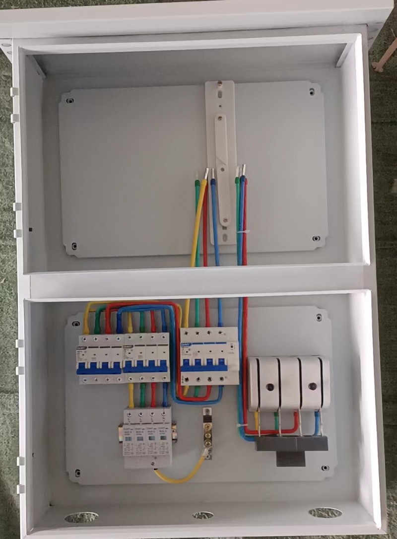 低壓光伏并網柜主要適用于光伏電站的小電源并網供電系統。主要由防孤島保護裝置、隔離刀開關、并網斷路器、防雷器、溫濕度控制器、電能計量裝置和柜體附件等組成。