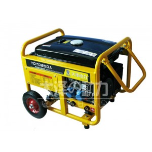 250A汽油發(fā)電電焊機(jī)TOTO250A推薦理由:該電焊/發(fā)電機(jī)組焊接電流更平穩(wěn)焊接電流穩(wěn)定,小電流焊接易起弧,焊接效果好,飛濺小,焊接成型美觀;輔助電源220v/5Kw功率;采用電子電位器調(diào)節(jié)焊接電流,在80-230A電流可調(diào)節(jié),故障率更低,維修方便簡單。