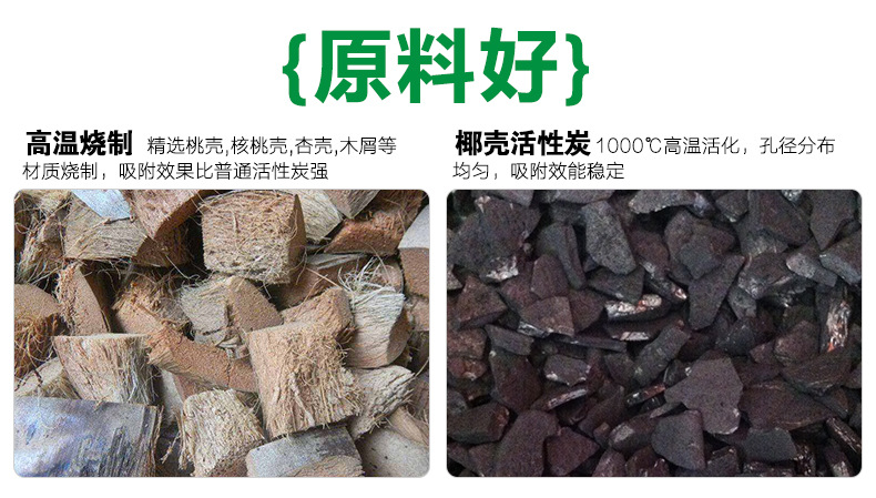 本品以椰殼、杏殼為原料,采用新的活化法精制而成。