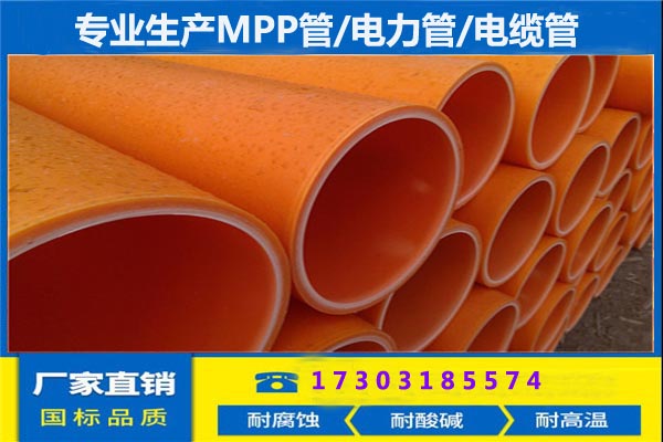 具有抗高溫、耐外壓的特點,適用于10KV以上高壓輸電線電纜排管管材。非開挖工程MPP排管(改性聚丙烯管)廣泛應用于城鎮電力電纜、建筑給排水敷設等領域。