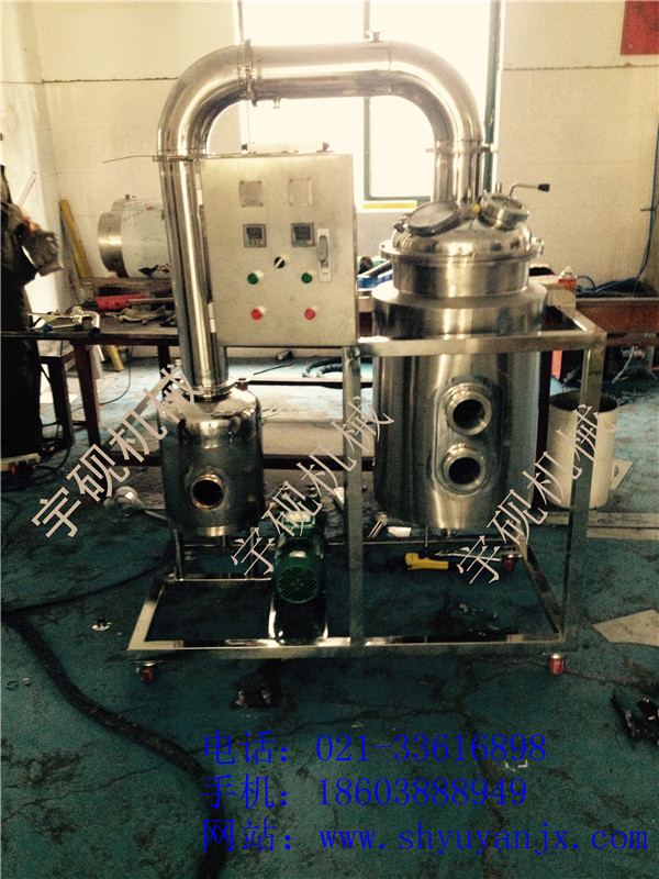 6. 液料在全密封狀態無泡沫濃縮,用本設備濃縮出來的藥液,具有無污染,藥味濃的特點,而且清洗方便 (打開加熱器的上下蓋即可進行清洗)。本設備操作簡單,占地面積小。加熱器、蒸發器采用不銹鋼保溫結構,保溫層外用不銹鋼薄板制作外殼,表面做鏡面或亞光處理。