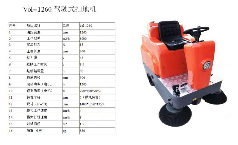 座駕1260型掃地機(jī)是掃地、吸塵結(jié)合的自動(dòng)駕駛式清潔的綜合機(jī)器,戶外、廠房?jī)?nèi)外都可以使用。