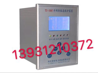 光伏防孤島保護裝置TC-3087適用于清潔電源或小電源并網供電系統,與其公眾電網配電系統(由一臺10kV/0.4 kV配電變壓器供電)一起并網供電。由于并網系統地外部原因或自然原因,很有可能造成本地電源系統孤島運行,這對于現場的發電設備和系統電網危害都很大,一般逆變器和風電發電系統都自帶防孤島的功能,但是為了安全可靠,外部并網點也可安裝防孤島的保護裝置,在發生孤島現象時,作為后備保護可以快速切出分布式孤島電源,由此本裝置可以完全滿足此功能。