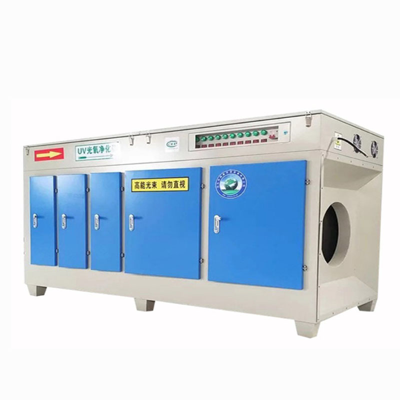 對惡臭氣體及其它刺激性異味有的清除效果。 收集廢氣輸入到本凈化設備后,凈化設備運用高能UV紫外線光束、臭氧O3等技術組合起來對廢氣進行協同分解氧化反應,使廢氣降解轉化成無害無味化合物、水和二氧化碳,再通過排風管道排出。 UV光解凈化裝置:由初濾單元、C波段紫外線裝置、催化裝置、降解收集、臭氧發生器及過濾單元等設備和部件組成。