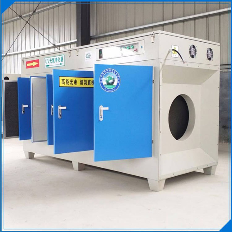 另外通過添加特制催化劑:根據不同的廢氣成分配置27種以上相對應的惰性催化劑,催化劑采用蜂窩狀金屬網孔作為載體,全方位與光源接觸,惰性催化劑在338納米光源以下發生催化反應,放大10-30倍光源效果,使其與廢氣進行充分反應,縮短廢氣與光源接觸時間,從而提高廢氣凈化效率。催化劑還具有類似于植物光合作用,對廢氣進行凈化的效果。通過特定波長光線照射,激活納米光催化劑,生成電子空穴對,使光催化劑與周圍的H2O分子O2分子發生作用,結合生成氫氧自由基OH,通過氫氧自由基層層鎖住空氣中各種有害成分,分解有害分子結構構造,抑制細菌生長和病毒的活性能力,從而達到殺菌、空氣凈化、除臭、防霉、消除污染的目的。工業廢氣利用排風設備輸入到本凈化設備后,凈化設備運用高能UV紫外線光束及臭氧對工業廢氣進行協同分解氧化反應,