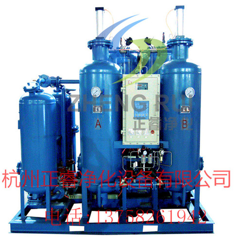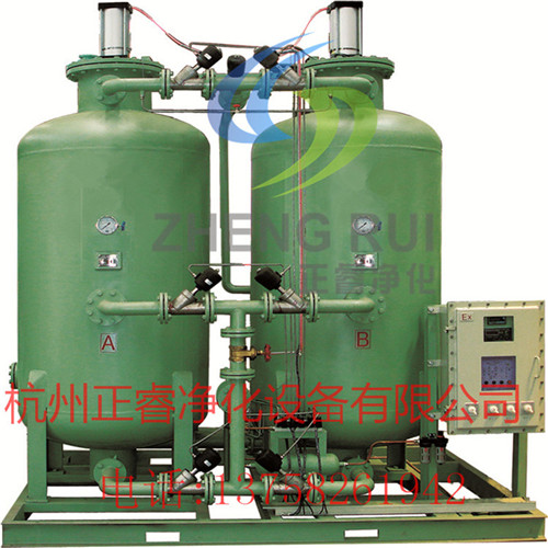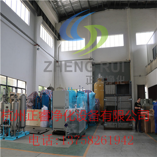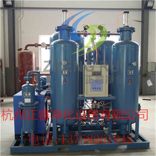 杭州正睿凈化設備有限公司(24小時服務熱線:13758261942)生產的制氮機是根據變壓吸附原理,采用高品質的碳分子篩作為吸附劑,在一定的壓力下,從空氣中制取氮氣。經過純化干燥的壓縮空氣,在吸附器中進行加壓吸附、減壓脫附。由于空氣動力學效應,氧在碳分子篩微孔中擴散速率遠大于氮,氧被碳分子篩優先吸附,氮在氣相中被富集起來,形成成品氮氣。然后經減壓至常壓,吸附劑脫附所吸附的氧氣等雜質,實現再生。一般在系統中設置兩個吸附塔,一塔吸附產氮,另一塔脫附再生,通過PLC程序控制器控制氣動閥的啟閉,使兩塔交替循環,以實現連續生產高品質氮氣之目的。