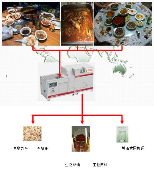 本設備分離出泔水中殘羹剩菜用于做糖化飼料,有機肥料分離出殘油,用于工業原料(日用化工;生物柴油的生產)