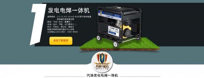 上海歐鮑孫偉介紹大澤動力:經營1-80KW汽油發電機組、190-800A發電電焊機組、3-1000KW柴油發電機組、內燃水泵的企業。為各領域用戶提供備用、常用、應急電源,是集工程設計、市場營銷、環保降噪、技術服務于一體的企業。銷售網絡以及售后服務隊伍覆蓋每個角落。公司擁有的檢測設備、專業的技術、完善的質量管理體系,具有雄厚的研發技術實力。