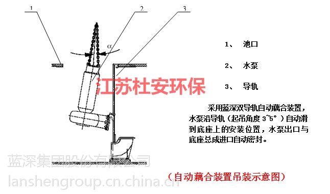 雙導(dǎo)軌自動(dòng)安裝系統(tǒng),給安裝、維修帶來(lái)了極大的方便,人可不必為此而進(jìn)出污水坑。