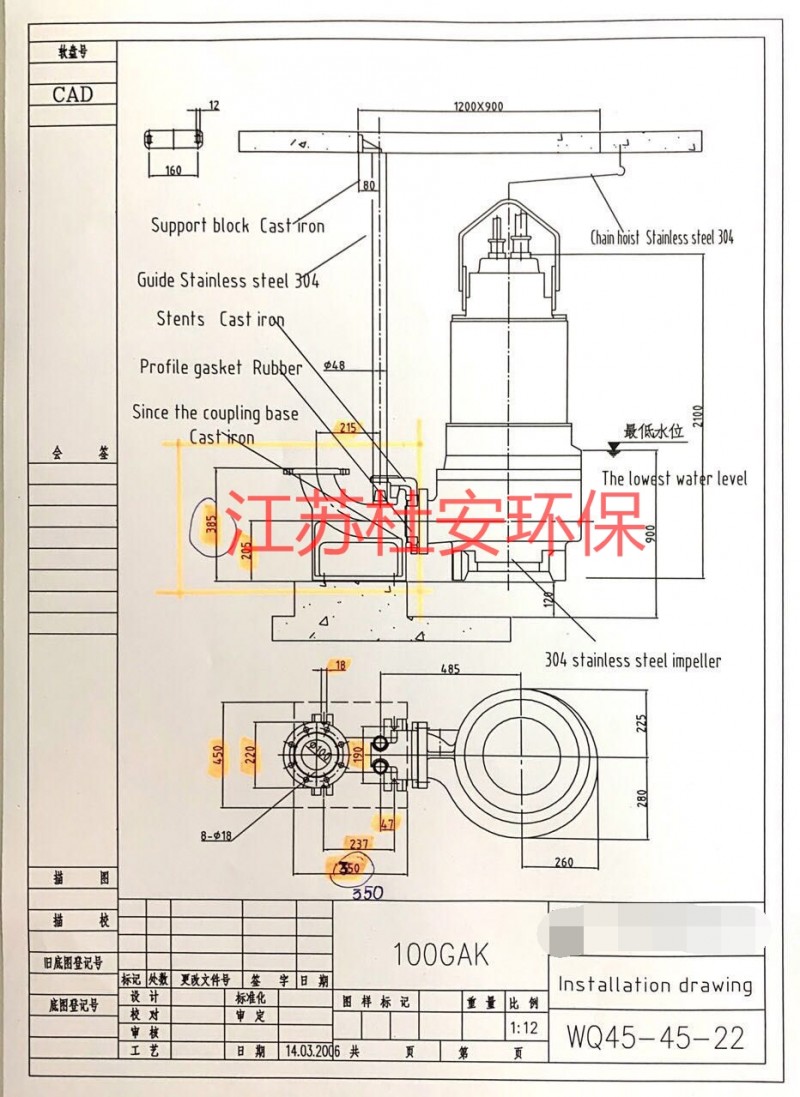 江蘇杜安環保AS型潛水式排污泵性能參數 :