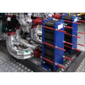 由于板式換熱器是由一系列具有一定波紋形狀的金屬片疊裝而成的一種新型高效換熱器。各種板片之間形成薄矩形通道,通過板片進行熱量交換,其結構緊湊,操作維護簡便,傳熱效率高等特點,已成為城市集中供熱工程中換熱站的首選換熱產品,適用于水—水換熱系統,汽—水換熱系統及生活熱水供應系統,對合理分配熱能,提高熱管理水平起到重要作用。