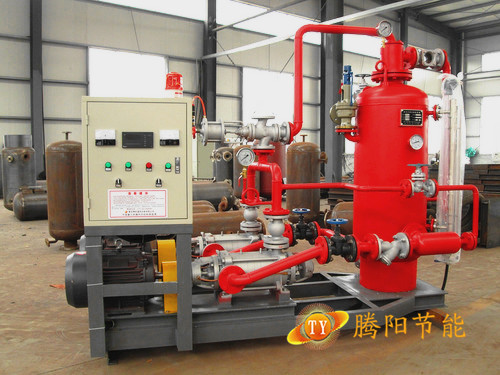 山東騰陽凝結水回收裝置能夠實現高溫凝結水和高能二次汽的完全閉式回收,降低了熱量損失,提高凝結水回收率和鍋爐給水溫度。同時可以節約燃料和純凈的軟化除氧水,減少蒸氣排放造成的熱污染。我公司科研人員在克服水泵高溫汽蝕這一世界性難題而研發的,實現了密閉式凝結水回收,充分回收凝結水二次閃蒸蒸汽,節約能源和水資源,使能源回收利用率達百分之95以上。