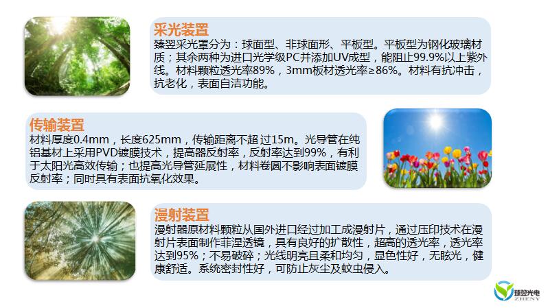 光導照明標準組件由4個部分組成采光罩、防雨器、光導管(每節長長度625mm)、漫射器。一套完整光導照明包括一個標準組件+延長管