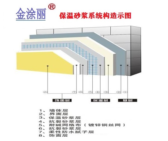 南京金陽節能建材有限公司生產的金涂麗牌石膏基保溫砂漿具有導熱系數小,抗壓強度高,不空鼓不開裂的功效。 石膏基無機保溫砂漿的生產過程是比較繁瑣的,每個環節都是十分的重要的。要生產出優質的保溫砂漿產品,除了根據使用原材料的優質性有關,而且經過研究發現,選擇了一款好的保溫砂漿生產線設備對保溫砂漿產品的優質性也是極其重要的。保溫砂漿產品是將石膏、膠粉、硅粉、海泡石、進口纖維、天然玻化微珠作為主要保溫材料以及各種添加材料按照一定科學的配方比例通過專業的設備進行混合攪拌而成,然后用包裝袋打包成品后,供給建筑施工所使用的一種建筑砂漿材料。