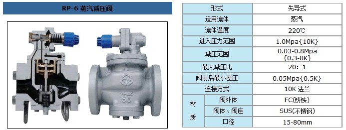 日本VENN閥天RP-6蒸汽減壓閥用減壓閥適用于蒸汽系統減壓,其動作方式為先導活塞,最大減壓比為20:1。