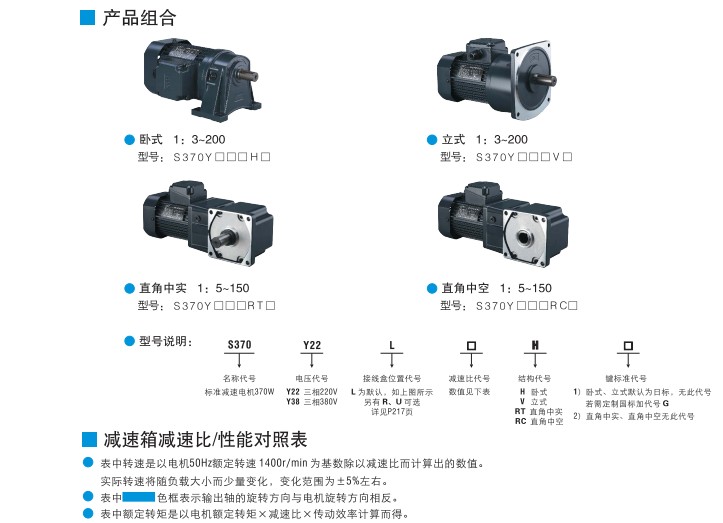 全系列臥式(H)、立式(V)、直角中實(RT)、中空(RC)減速電機。全系列標(biāo)準(zhǔn)減速電機(S)、變頻減速電機(F)、電磁制動減速電機(B),