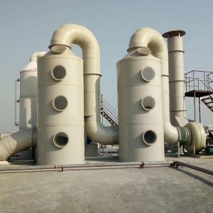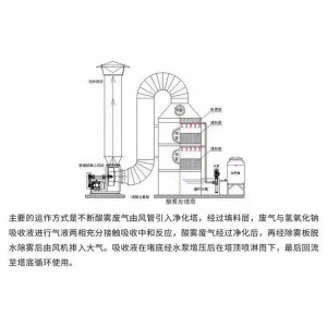 噴淋塔又稱為水洗塔、洗滌塔、凈化塔;按性質分為酸性洗滌塔、堿性洗滌塔;按形狀也可分為立式洗滌塔、臥式洗滌塔;按材質又為分PP洗滌塔、玻璃鋼洗滌塔等。噴淋塔也是很常用的除臭設備,適用于所有大中型密閉或半密閉的空間。惡臭氣體經負壓收集后,進入噴淋塔,通過一系列化學反應去除氣體中的臭氣分子。噴淋塔占地面積小,運行成本很低,可實現自動控制。產品外形美觀,根據不同場合,有單、兩、三洗滌方式。