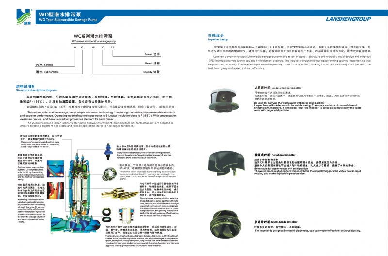 南京藍深WQ25-8-1.5剩余污泥泵是一種用于環保行業用來輸送含固體顆粒、纖維等固液混合液體如生活污水、工業廢水、泥漿等的泵類產品。藍深集團WQ型潛水排污泵由污水泵、密封系統、潛水電機、控制及 保護系統、自動安裝系統等幾部分組成。與一般污水泵不同的是:WQ25-8-1.5潛水排污泵中泵與電機同軸旋轉,并同時潛入液下工作。泵的密封系統能有效地阻止液體進入到電機腔中,保護電機安全運行??刂萍氨Wo系統使泵在發生漏水、漏油、過載、過熱、缺相等故障時,及時報警并停機備修。