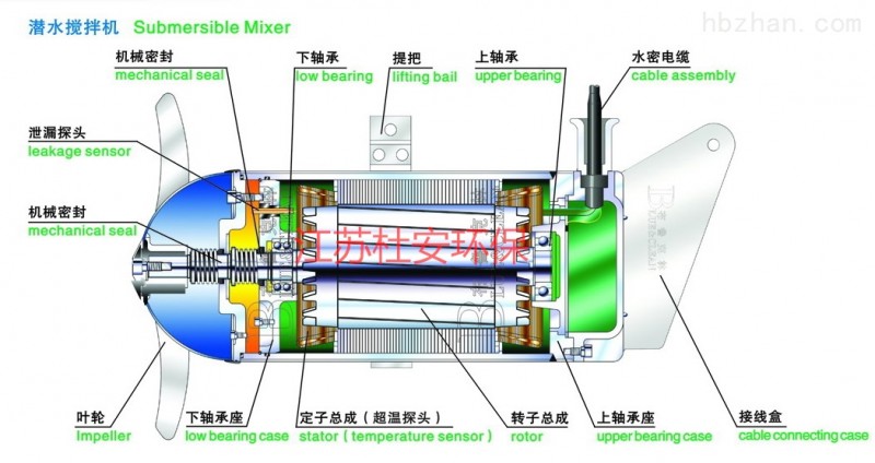 C.潛水?dāng)嚢柰七M(jìn)器應(yīng)該能夠在全浸沒(méi)條件下每天24小時(shí)連續(xù)運(yùn)行。同時(shí)應(yīng)能適應(yīng)連續(xù)運(yùn)行、間歇運(yùn)行和長(zhǎng)期停止?fàn)顟B(tài)后恢復(fù)運(yùn)行的工作狀況。漿葉由水下電機(jī)通過(guò)高精度、低負(fù)載齒輪的兩級(jí)、圓柱形的斜齒輪箱驅(qū)動(dòng)。