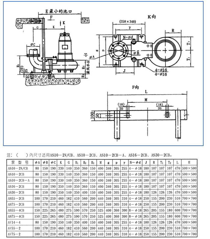 三利·AS/AV型撕裂式潛水排污泵外形尺寸與安裝尺寸: