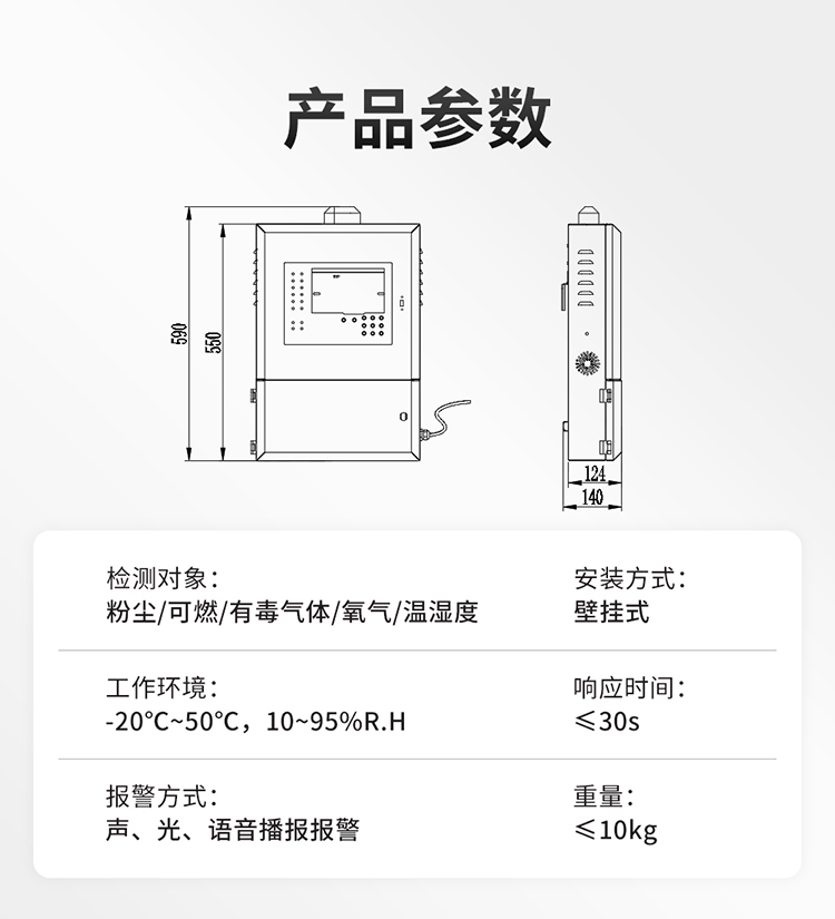粉塵報警控制器YR-K210產品優勢概述:粉塵測量儀的控制主機,兼容多種信號,對下采集支持:分線、485總線、二總線、CAN總線、LoRa無線傳輸,對上傳輸支持:RS485、網口、4G;人機交互界面,采用7寸1024x600高清觸控電容屏,圖形化操作界面,累計使用時長可達50000小時。