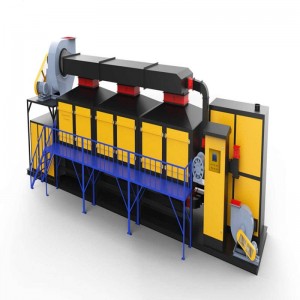 催化燃燒主要由熱交換器、燃燒室、催化反應器、熱回收系統(tǒng)和凈化煙氣的排放煙囪等部分組成,其凈化原理是:未凈化氣體在進入燃燒室以前,先經過熱交換器被預熱后送z燃燒室,在燃燒室內達到所要求的反應溫度,氧化反應在催化反應器中進行,凈化后煙氣經熱交換器釋放出部分熱量,再由煙囪排入***