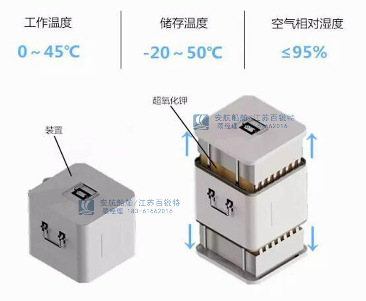 平時,生氧藥劑密封儲存在藥箱內,使用時取出插入殼體即可。