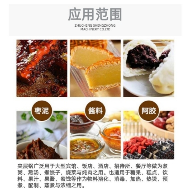 夾層鍋廣泛應用于各類食品的加工,也可用于大型餐廳或食堂熬湯、燉肉、熬粥等,是食品加工提高質量、縮短時間、改善勞動條件的良好設備。