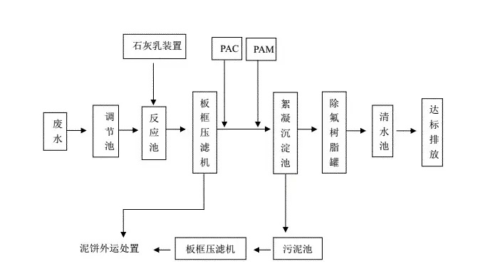 在廢水處理過程中,主要排放合成氟化鋰生產廢水和產品六氟磷酸鋰桶清洗廢水,主要含有氟、磷酸鹽及鋰,這是一種高氟、高濃度磷酸鹽無機化工廢水。