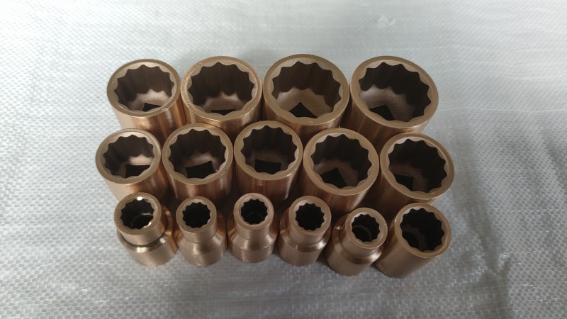 防爆套筒,套筒內(nèi)孔形狀多為六角孔或十二角孔;材質(zhì)為鈹青銅合金、鋁青銅合金兩種;一般套筒為組件形式出現(xiàn),并配有手柄、接桿、萬向接頭、旋具接頭等多種附件。防爆套筒扳手適用于各種易燃、易爆工作環(huán)境下,緊固或拆卸六角頭螺栓、螺母(尤其適用于空間狹小、位置深凹的工作場合)。