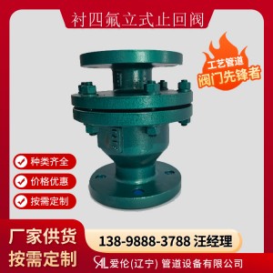 襯氟止回閥的閥瓣呈圓盤狀,繞閥座通道的轉軸作旋轉運動,因閥內通道成流線形,流動阻力比升蝶式止回閥小,適用于低流速和流動不常變化的大口徑場合。產品驅動方式可選用無驅動,連接方式可選用法蘭,結構形式可選用升降式,密封結構可選用軟密封,壓力范圍PN0.1-10Mpa,公稱通徑為DN15-1000mm,材質可選用鑄鋼、不銹鋼。