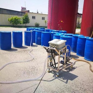 6、 換第二桶,把灌裝槍插到桶里,依照上面3、4、5、的步驟灌裝,直至完成全部大桶的灌裝。