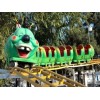 滑行龍是電力驅動有軌類游藝機中組車做復合平面運動的一個品種。組車以傳統的“龍”為整體造型,配以前后兩個傳動部自行驅動,載四輛車廂,沿著非規則螺旋形曲軌行駛,時而盤旋上升時而急速轉彎、俯沖穿行于上層軌道之下,如“蛟龍”翻騰舞動。乘坐其上有驚無險,新奇快樂。