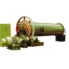 為臥式筒形旋轉裝置,外沿齒輪、鏈輪或皮帶傳動,兩倉格子型球磨機。物料由送料機經入料中空軸螺旋均勻地進入球磨機第一倉,內裝三種不同規格的球介,筒體轉動產生離心力將球介帶到一定高度后落下,對物料產生重擊和研磨作用。物料在第一倉達到粗磨后,經單層隔倉板進入第二倉,該倉內裝有四種不同規格的球介,將物料進一步研磨。粉狀物通過出料口篩欄板排出,進入振動篩粉機進行分級完成粉磨作業。