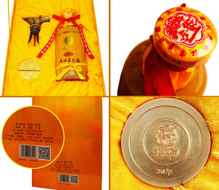 富貴江南30年年份酒經過三十個春秋的窖藏陳釀而成,三十年的歲月讓每一滴富貴江南陳釀都口味幽雅細膩,濃郁香醇的酒體,豐滿純厚的香氣,層次清晰的酒體打造出一款入口圓潤綿柔,口感致密,滿口生香,令人通體舒暢的酒。每一滴富貴江南酒都經歷了高溫制曲、高溫堆積、高溫入池、高溫接酒,低出酒率、高糧食消耗、多用曲,滴滴得之不易。瓶身采用了帝王黃瓷,帝王黃瓷色彩豐富、晶瑩透亮、色澤純正、高貴華麗,鐘天地之靈氣、聚日月之精華,如此高貴典雅的包裝,穩重大氣的色調,使得30年秘釀更適合用于高級商務接待、禮品用酒、收藏、珍藏的一款美酒佳釀。
