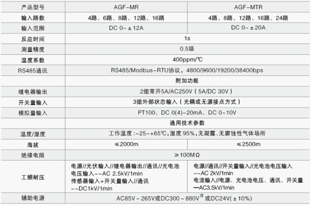 AGF系列光伏匯流采集裝置是專門應用于智能光伏匯流箱,用于監測光伏電池陣列中電池板運行狀態,光伏電池電流測量,防雷器、直流斷路器狀態采集,繼電器接點輸出,帶有風速、溫度、輻照儀等傳感器接口,裝置帶有RS485接口可以把測量和采集到的數據和設備狀態上傳。